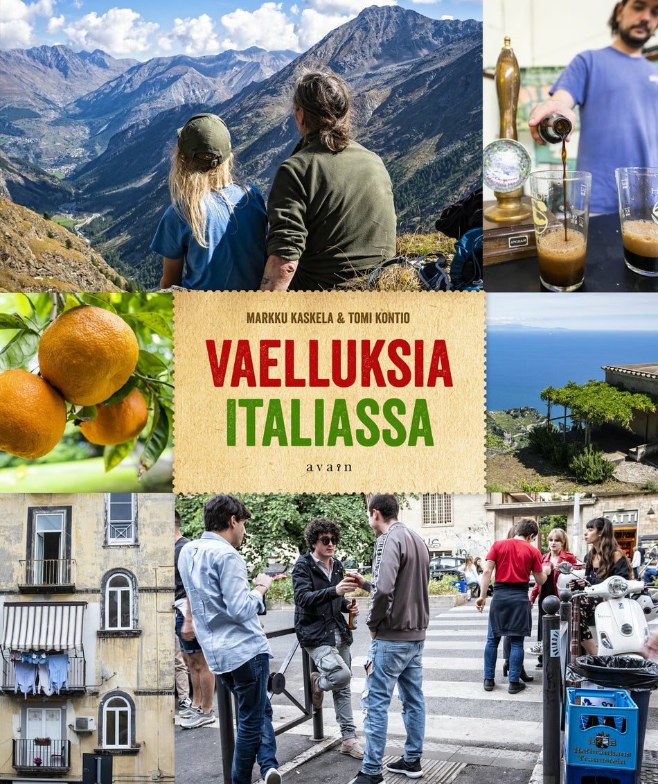 Vaelluksia Italiassa on Markku Kaskelan ja Tomi Kontion kolmas Italia-kirja. Aiemmin heiltä on ilmestynyt Avain-kustantamon kautta Puhuvan talon tarinoita nella citta eterna ja Minun Italiani - Saapasmaan suomalaistarinat.