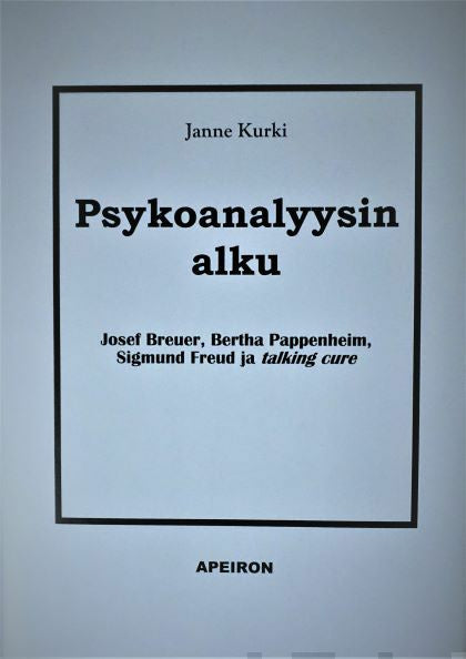 - Avainsanat historia; hypnoosi; henkilöhistoria; hoito; skitsofrenia; psykiatria; Wien; juutalaisuus; psykiatrit; hysteria; psykoterapia; ihmiskuva; potilaat; mielenterveyshäiriöt; Buber; Freud; hoitosuhde; psykoanalyysi; talking cure; psykiatrian historia; Pappenheim; IPA; Breuer; Anna O; writing cure; sairauskertomukset