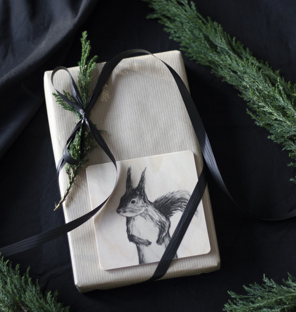 Lasinalunen Miiko Orava koivuvaneri, melamiinipinta 10x10 cm
