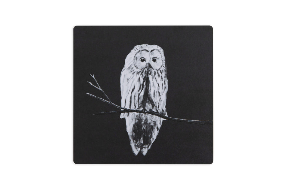 Lasinalunen Miiko Pöllö, musta koivuvaneri, melamiinipinta 10x10 cm