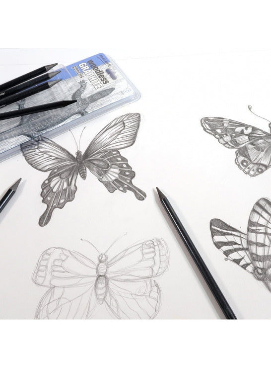 Mont Marten puuttomat lyijykynät on valmistettu huippulaadukkaasta grafiitista, ja ne sopivat erinomaisesti yksityiskohtien piirtämiseen, piirrosten luonnosteluun ja ohuiden viivojen tekemiseen. Viivasta tulee leveämpi, kun kynää pitää hieman vinossa. Kynän kärjellä taas voi piirtää tarkkoja yksityiskohtia. Kynä on erittäin miellyttävä käyttää, sillä se on päällystetty lakalla, minkä ansiosta se ei tahri sormia. Lisäksi kynä tuntuu tukevalta kädessä. Teroita tavallisella teroittimella tai hiekkapaperilla. Pyyhi pehmeällä pyyhekumilla, joka on valmistettu joko vinyylistä tai kumista. Huippulaadukas lyijykynä, 6 kovuusastetta: HB, 2B, 4B, 6B, 8B & EE, EE sisältää 50 % grafiittia ja 50 % hiiltä, Päällystetty lakalla