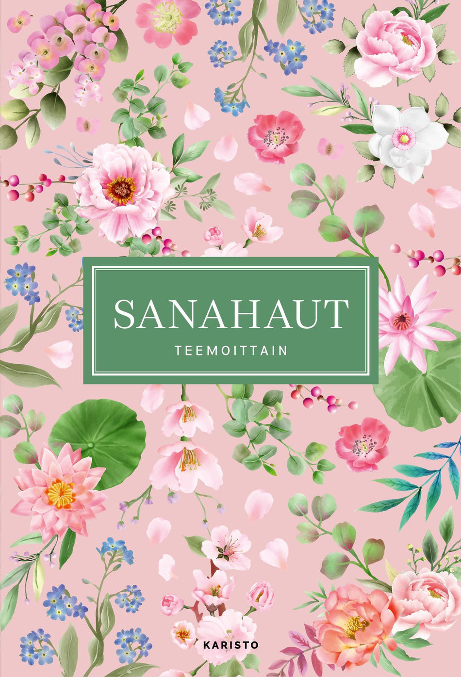 Sanasokkeloita seesteisiin hetkiin. Ruudukoissa on sanoja eri teemoista ja tunnelmista. Hurmaava kansi. -