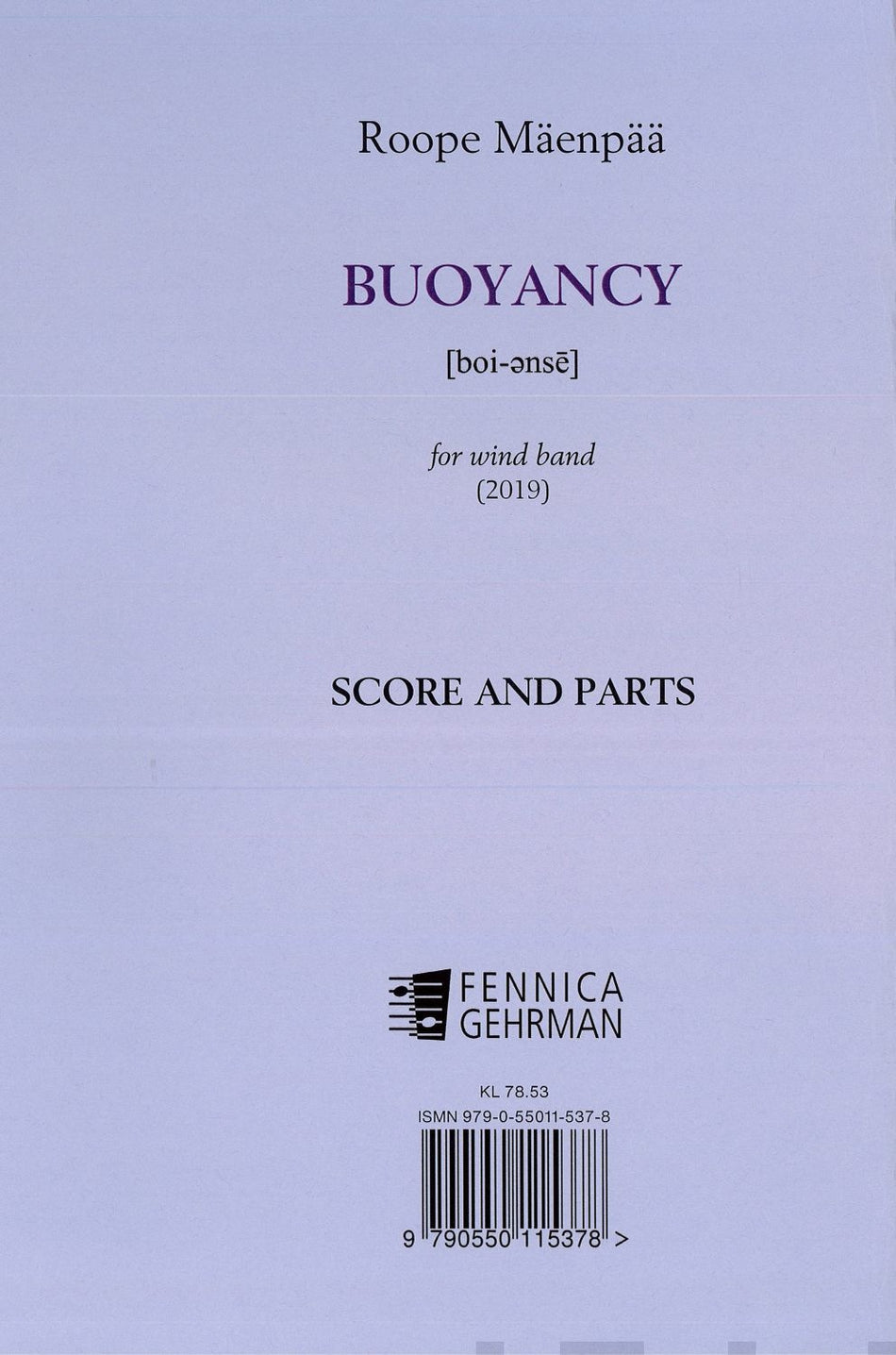 Buoyancy is a combination of sound and aerodynamics. Behind the title is an idea of starting to fly, getting up from the ground and at the end perhaps landing on one's home turf. Buoyancy is written in a manner that it would the young musicians both the joy of making music, but also the revelation of finding new ways to produce sounds. The work has been composed during the beautiful spring 2019 and it is a mandatory work in 2020 edition of the national wind band championship competition, category C (young bands).