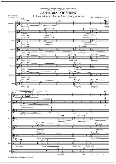 Alex Freeman's (b. 1972) Cathedral of Spring for chamber choir (2019) to poems of e.e. cummings and Robert Frost was commissioned and premiered by Somnium Ensemble. The composer tells: ”For the celebration of the 10th anniversary of Somnium Ensemble (Finland), I was commissioned to write a piece ... Lue lisää