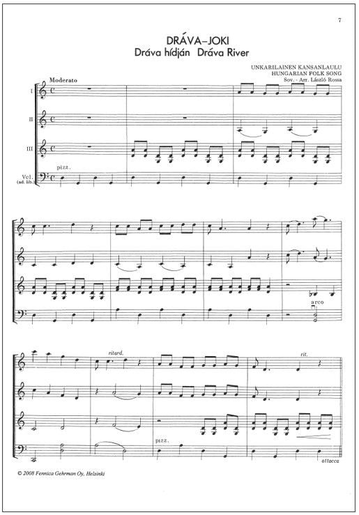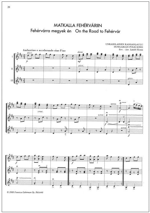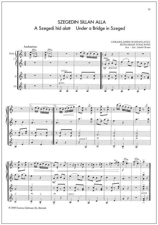 The imaginative and sparkling arrangements of Finnish and Hungarian folk songs by László Rossa in this collection "Chamber Music for young string players 3 " offer the possibility to play chamber music from the beginning of instrumental studies. Music is set for three or more violins, and a separ... Lue lisää