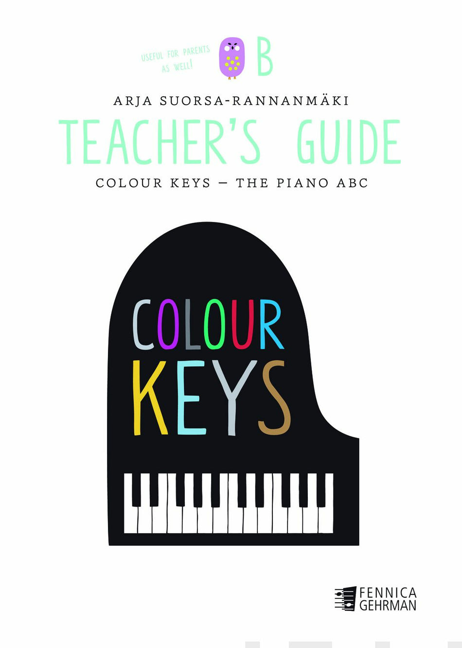 A child-centered Colour Keys method, which is based on the Colour Strings approach, introduces new musical concepts in the simplest manner possible. The different octave ranges of the keyboard are illustrated with a coloured slip that is placed behind the keys. In addition, a different character represents each octave. The staff is constructed gradually from a single-line staff into a five-line staff. The method uses relative solfa. Little do wandering on the keyboard suggests transposition. A transparent transposing slip will guide transposition and functions in every key. The pieces present a collection of folk songs and children's songs from many different countries. This separate Teacher's Guide (also available in Finnish) offers pedagogical information about the teaching material as well as the lyrics to the songs.
