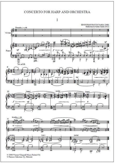 Piano reduction for Einojuhani Rautavaara's Concerto for harp and orchestra (2000) available for the first time (2024)! This product includes also the solo part edited by Kalen Smith.