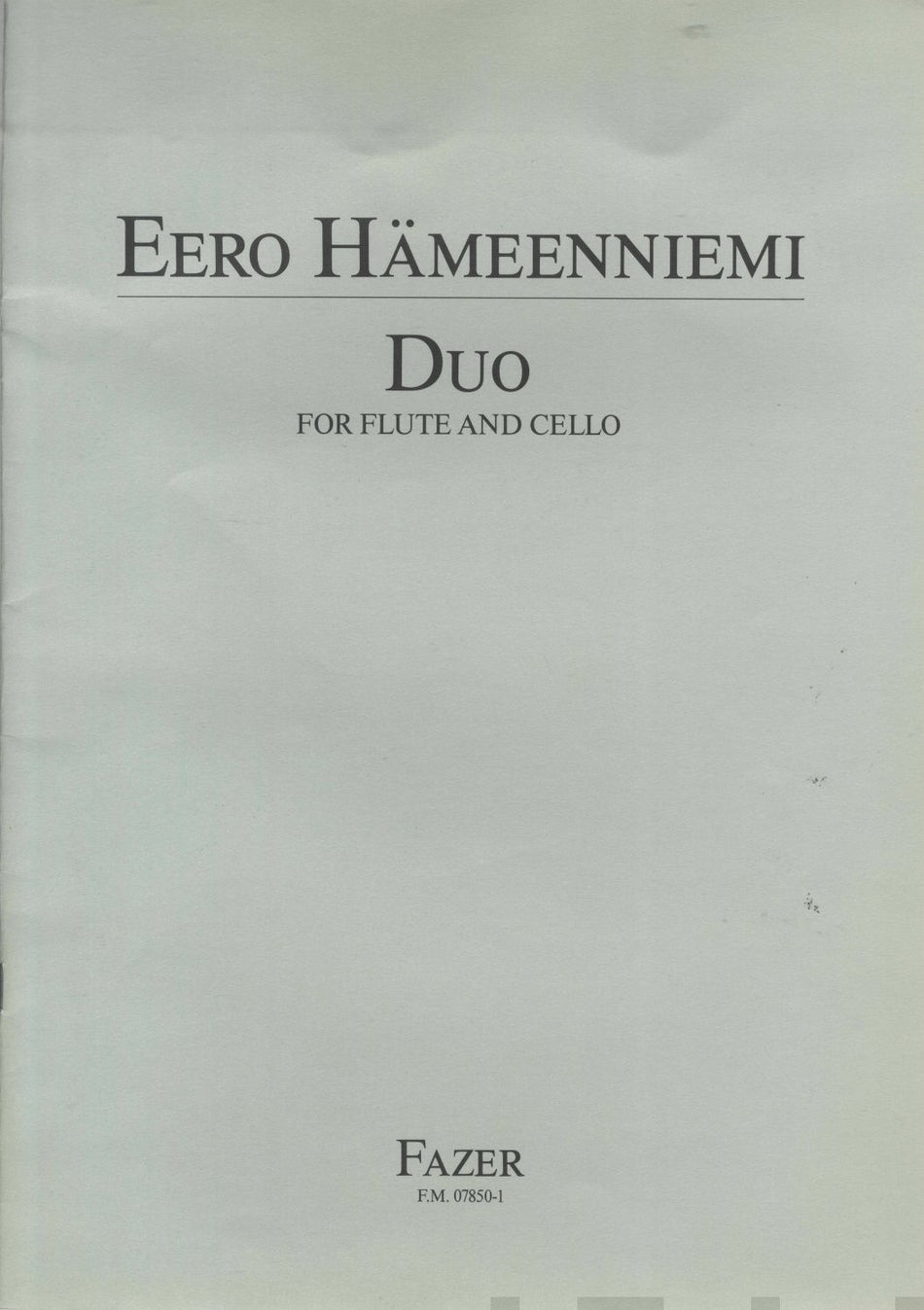 Eero Hämeenniemen Duo huilulle ja sellolle (1976) on eräänlainen keskustelu kahdelle soittimelle. Huilu ja sello jatkavat toistensa ajatuksia, kommentoivat niitä, ja joskus keskeyttävätkin kumppaninsa vuodatuksen. Monien vaiheiden jälkeen sopu kappaleen lopussa. Sävellyksen vapaasti virtaava rytmiikka saa vastapainokseen metrisen passacaglian, jossa sellon pizzicatot tavoittelevat paikoin modernin jazzin sävyjä.