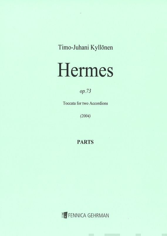 Dynamic and fast Hermes is composed in 2004 as a commissioned work by the Finnish National Council of Music. It is dedicated to Kalle Välimaa and Pekka Kuusela, who also gave the premiere.