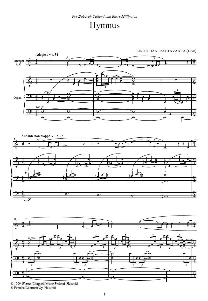 This 6 minute mystical work for trumpet and organ was written in 1999 for the The Hampstead and Highgate Festival in London where there was several of Rautavaara's orchestral and chamber works performed. To include a premiere in the programme, festival director Barry Milligan commissioned this pi... Lue lisää