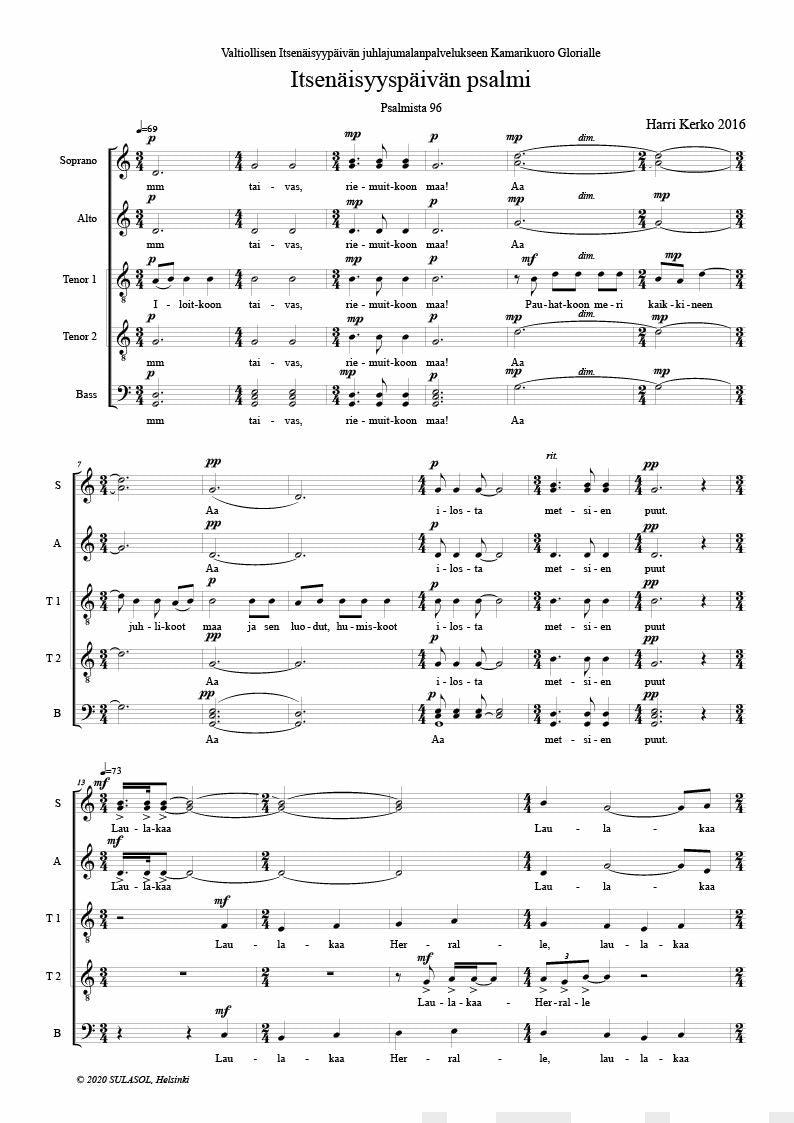 Harri Kerkon tyylikäs psalmi valtiolliseen itsenäisyyspäivän juhlajumalanpalvelukseen 2016.