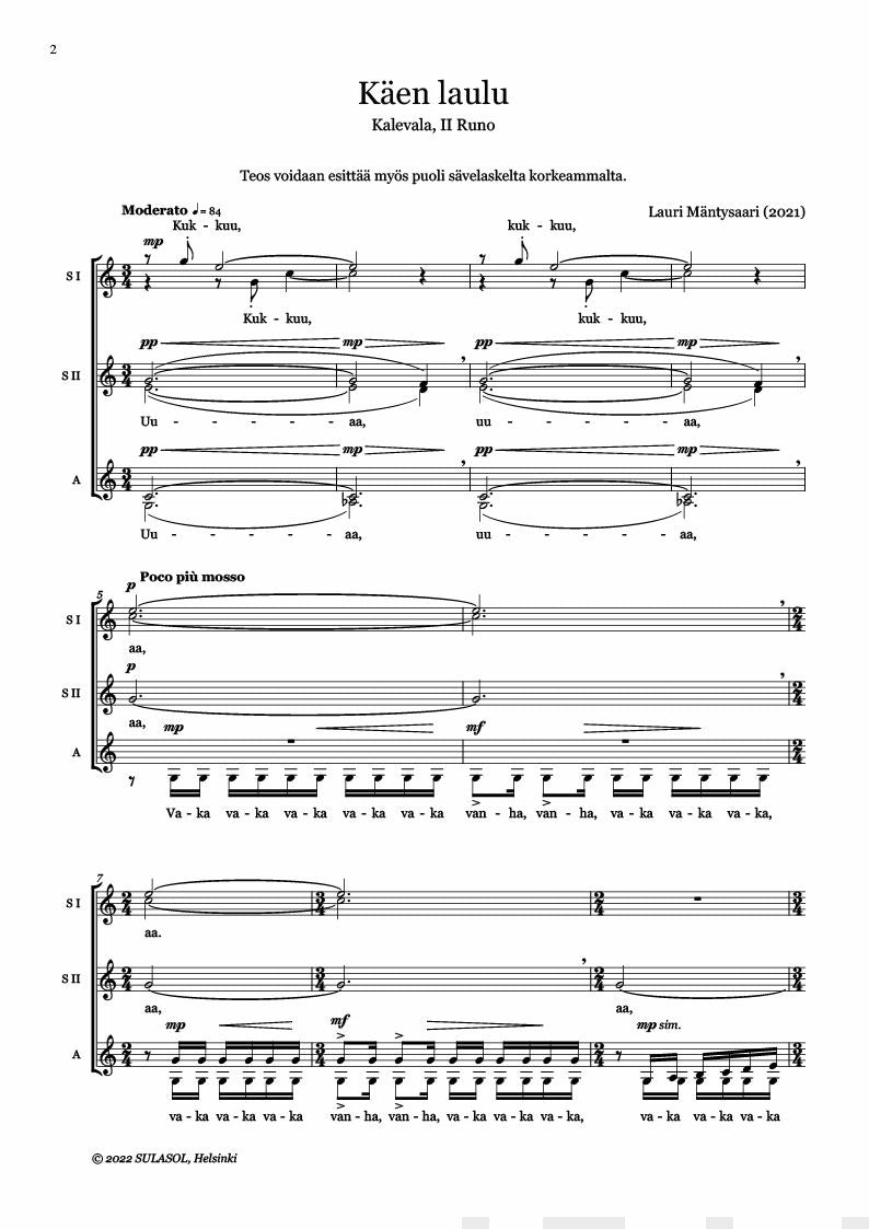 Tuore, vauhdikas ja uuden tyyppinen "lintulaulu". Teksti Kalevalan II runo.
