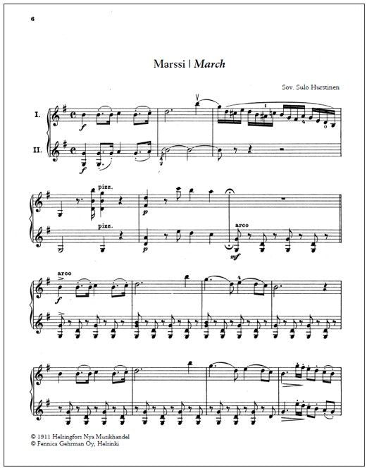 Finnish violinist and composer Sulo Hurstinen (1881-1979) had a remarkable career as a concert violinist in Nordic countries, Germany and Baltic countries. His smooth and charming arrangements of folk melodies from different countries for two violins are a sweet memory from the period of salon mu... Lue lisää