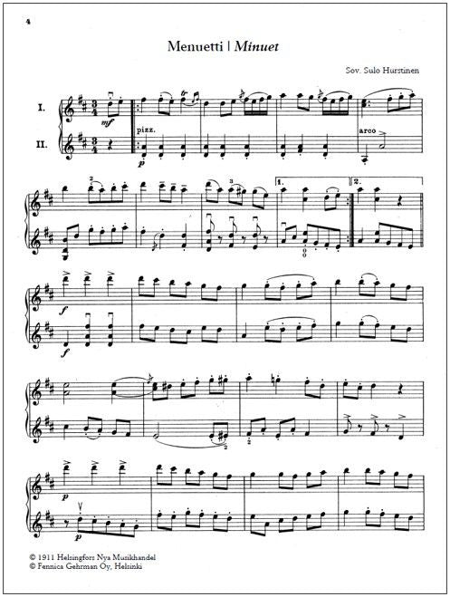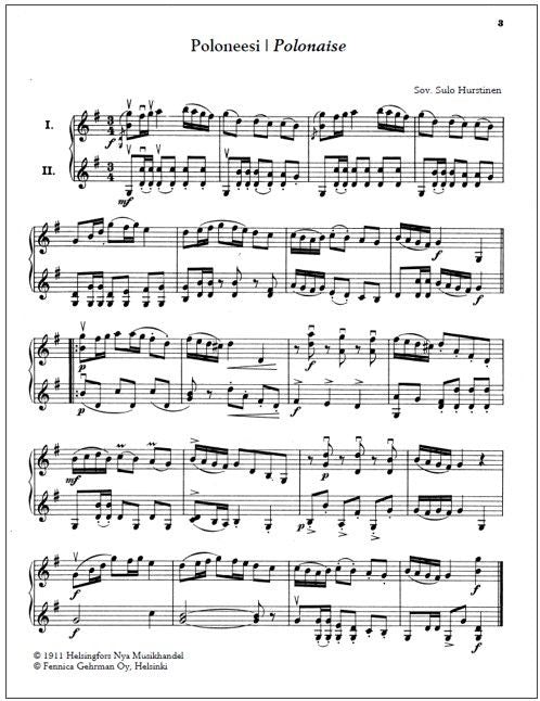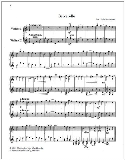 Suomalaisen konserttiviulisti Sulo Hurstisen (1881-1979) kansansävelmäsovitukset kahdelle viululle kaikuvat suloisia muistoja salonkimusiikin kukoistuskaudelta - ja ovat oivallista ohjelmistoa niin opetus- kuin esityskäyttöön.