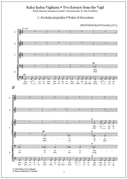 Two songs from Einojuhani Rautavaara's large work All-Night Vigil (1971-1972):
