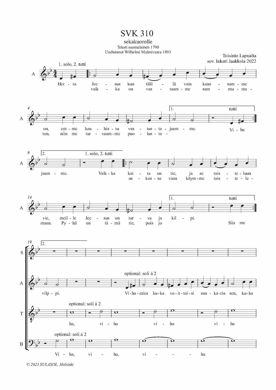 Kaksi virsisovitusta sekakuorolle Muu, suomi