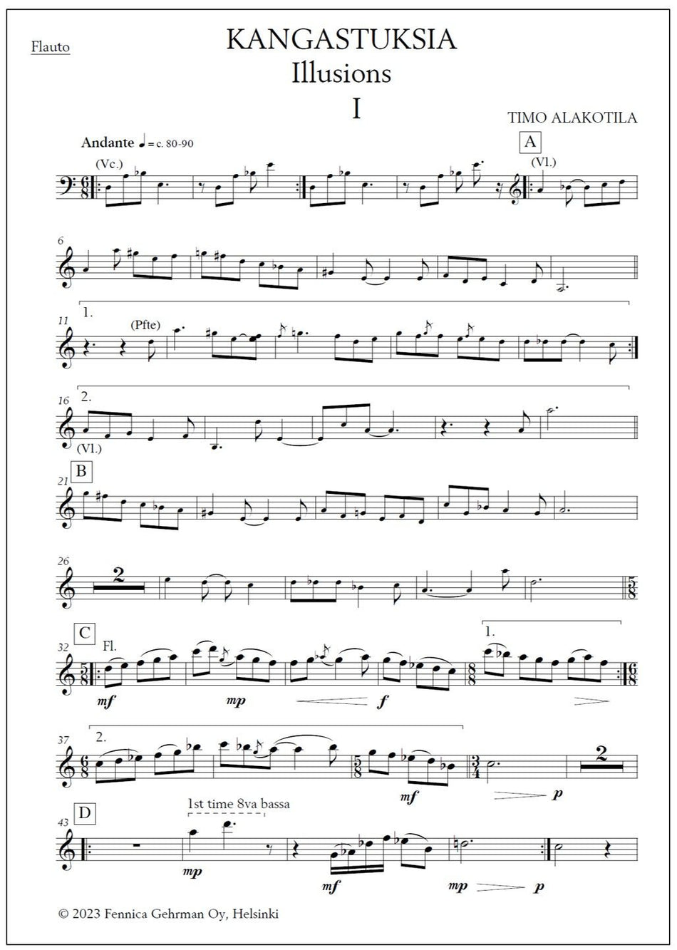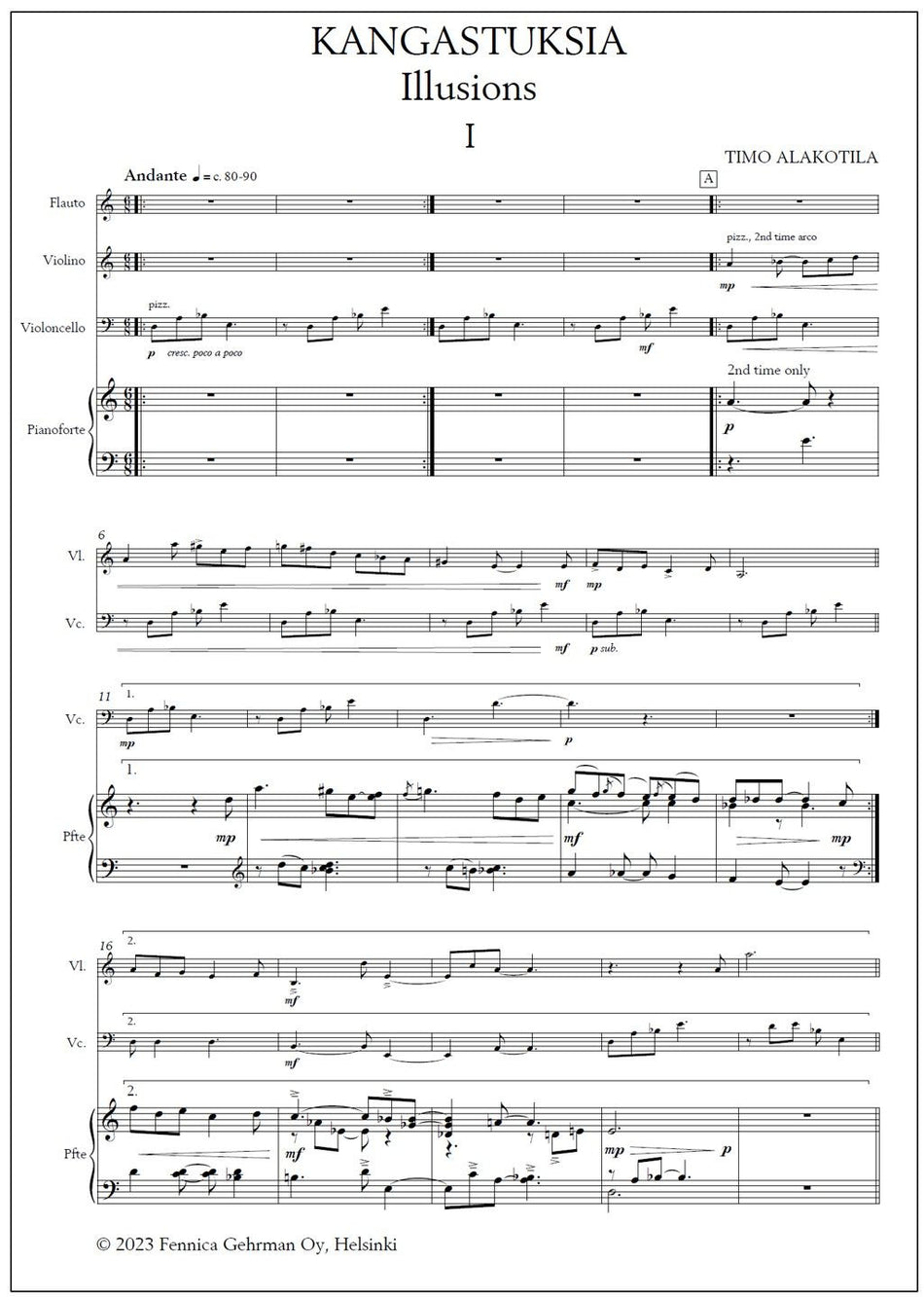 Kangastuksia - Illusions for flute, violin, violoncello & piano - Score (piano) & parts