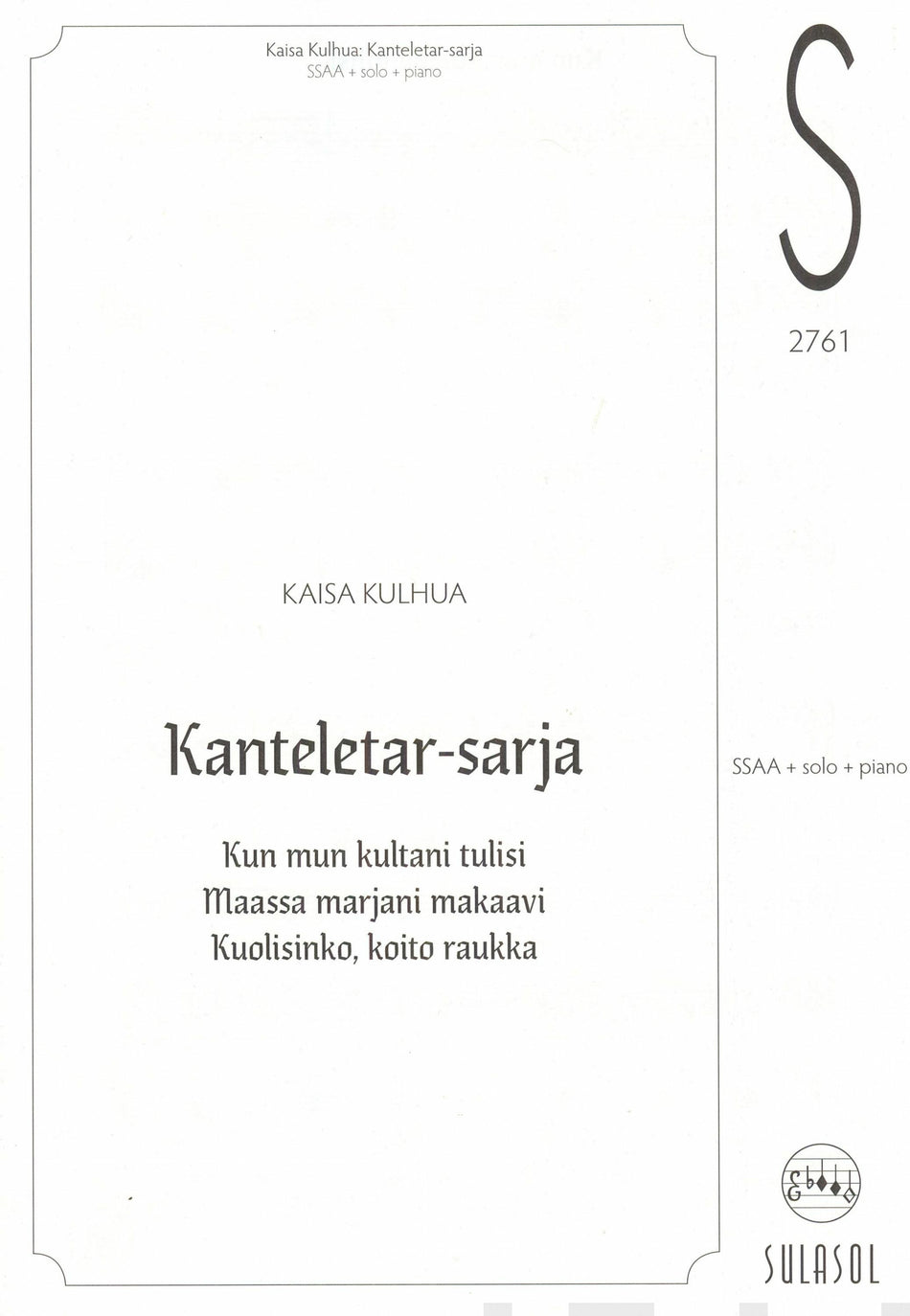 Lahjakkaan lauluntekijän laulusarja naiskuorolle ja pianolle. Lue lisää