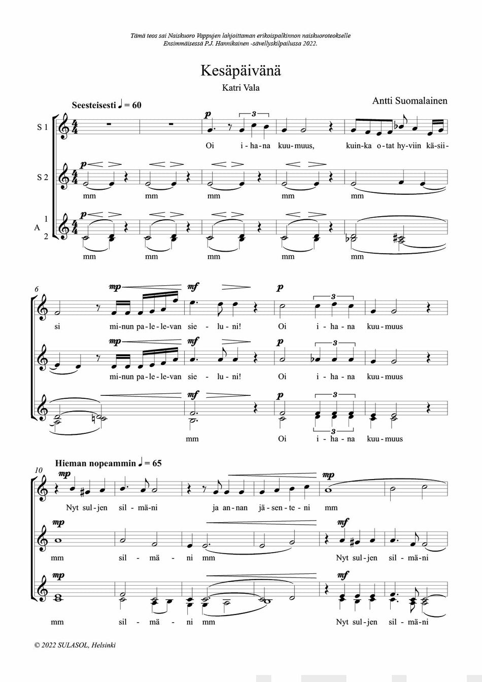 Tyylikäs tunnelmapala Katri Valan runoon. Sävellysvuosi 2021.