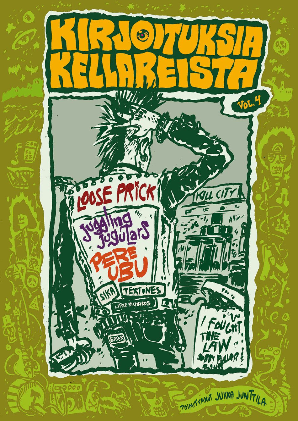 Kirjoituksia Kellareista bookzinen vuoden neljäs numero pitää sisällään mm.: Loose Prickin, Kouvolan sankarien koko tarina, Juggling Jugularsin seikkailut Euroopassa, kulttibändi Pere Ubun historia, Kill City - Stadipunkkien Kotipesä, I fought Crickets - Bobby Fuller Four - Clash, New York Doll, Kikka Laitisen rockuran alku, jne, jne. Tuhti rockin lukupaketti!
