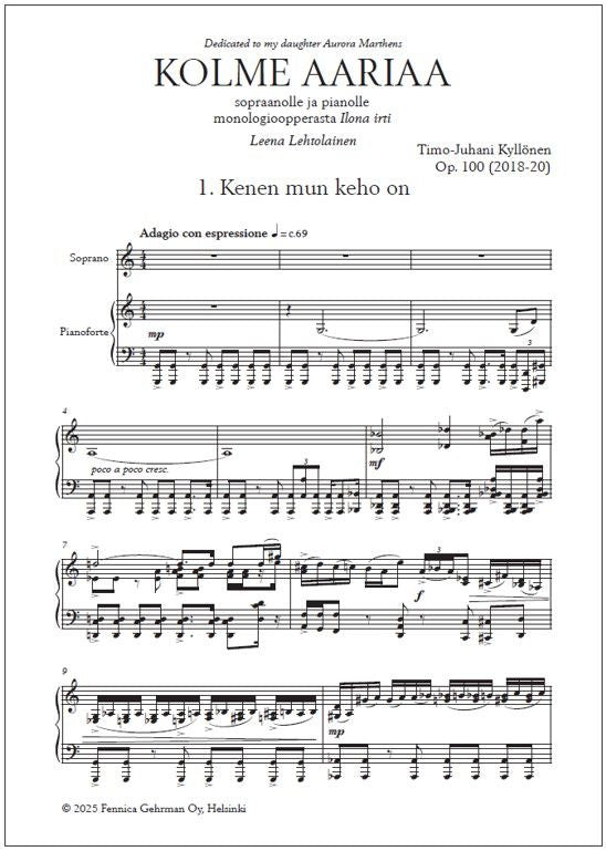 This product includes three arias from the opera set to soprano and piano with texts in Finnish (not sungable translations by Jaakko Mäntyjärvi are included).