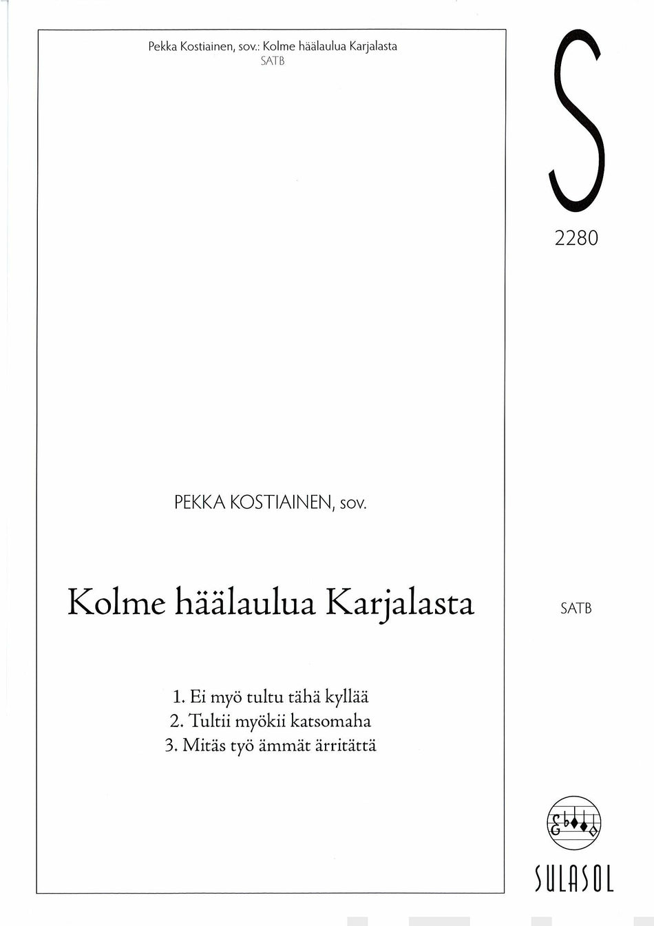 Kolme karjalaista häälaulua sekakuorolle sovitettuna. Sovittajana Pekka Kostiainen. Lue lisää