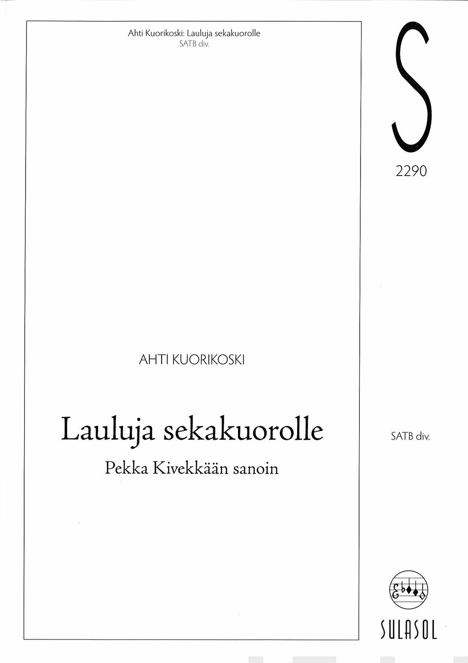 Lauluja sekakuorolle Pekka Kivekkään sanoihin. Lue lisää