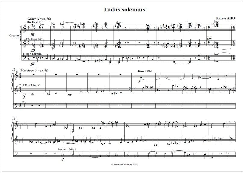 Kalevi Aho (b. 1949) composed Ludus Solemnis for organ in 1978. It was premiered by Tapio Tiitu.