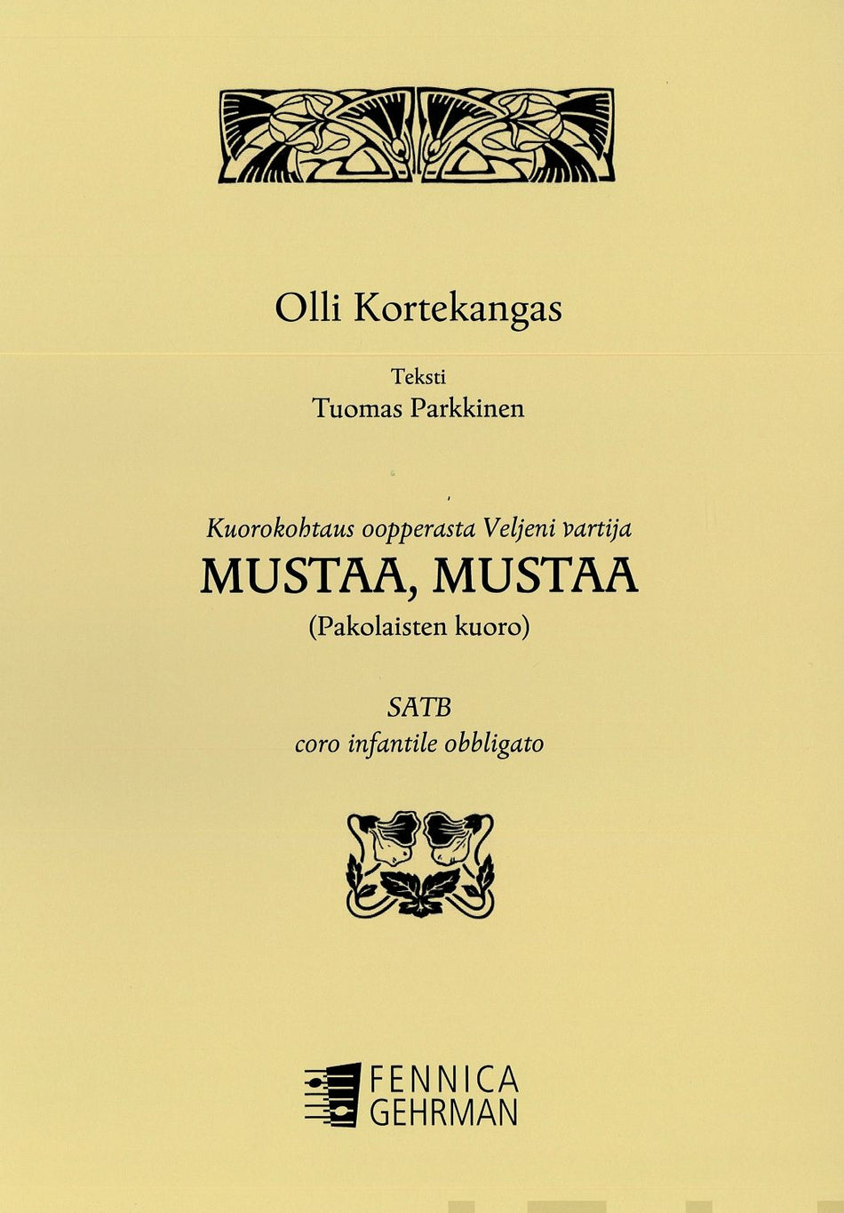 "Mustaa, mustaa" is an a cappella choral setting from Olli Kortekangas' and Tuomas Parkkinen's opera "Veljeni vartija - My brother's keeper", set against the background of Finland's civil war in 1918. This a cappella scene was the emotional highpoint of the opera. SATB + children's choir obligato (two voices).