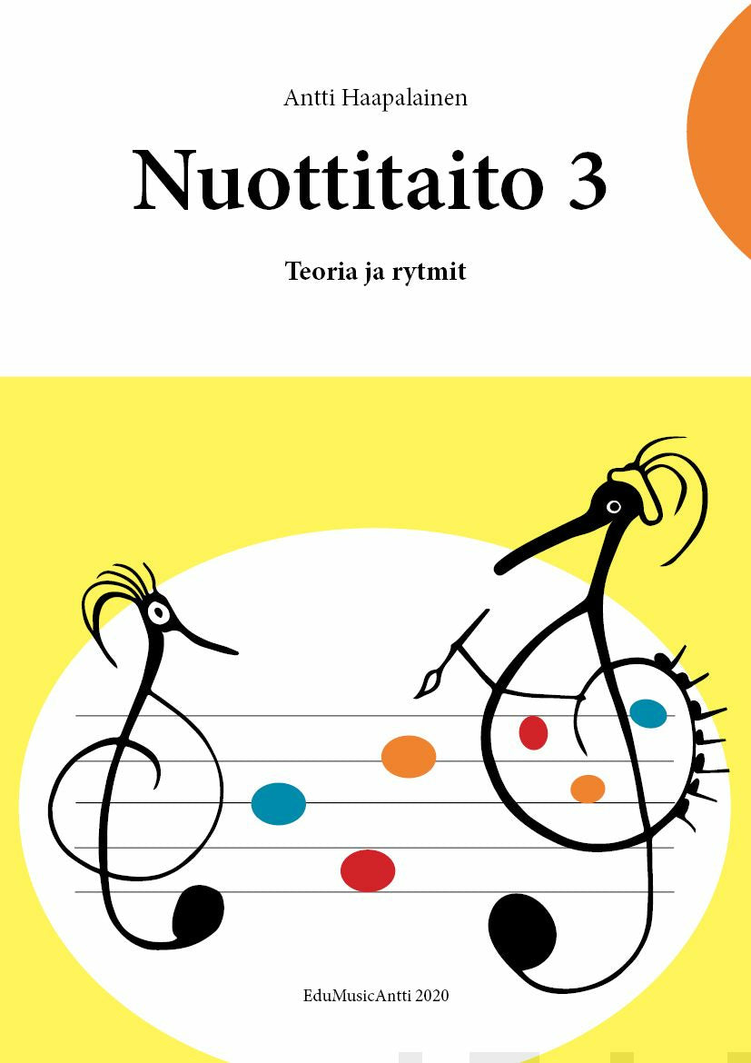 Nuottitaito 3 teoria ja rytmit soveltuu mainiosti myös aikuisten itseopiskeluun. Kirjojen lopussa on myös tyhjää nuottiviivastoa melodioiden kirjoittamiseen.