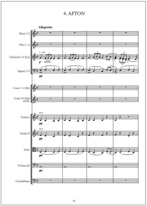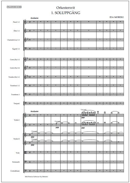 Orchestral suite Sunrise (Orkestersvit Soluppgång, duration 17') consists of four movements: