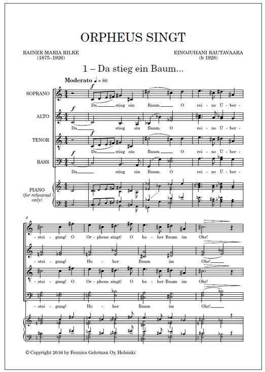 Einojuhani Rautavaara's Orpheus singt for mixed choir to poems by Rainer Maria Rilke includes three songs: