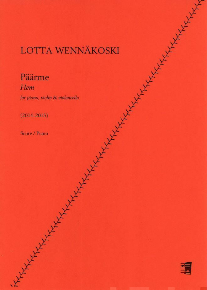 Lotta Wennäkoski tells about her 10 minute long work Päärme (Hem) for piano trio: "We often speak in music of crafting in a figurative sense, and craftsmanship is, for the composer particularly, a traditional professional virtue. I personally have from time to time nevertheless been interested in the concrete images aroused by handicrafts, the way fabrics feel, and sewing. The piano trio Päärme/Hem has a pulsative character, especially in the outer sections, and the idea of steady but erratically colourful stitching prompted the amusing and highly unusual word I chose for the title of the piece. The hemming in this trio is cheerfully brisk, though the result is not always even intended to be over-neat or regular. For noise sounds are also an intrinsic feature of a hand-made texture.