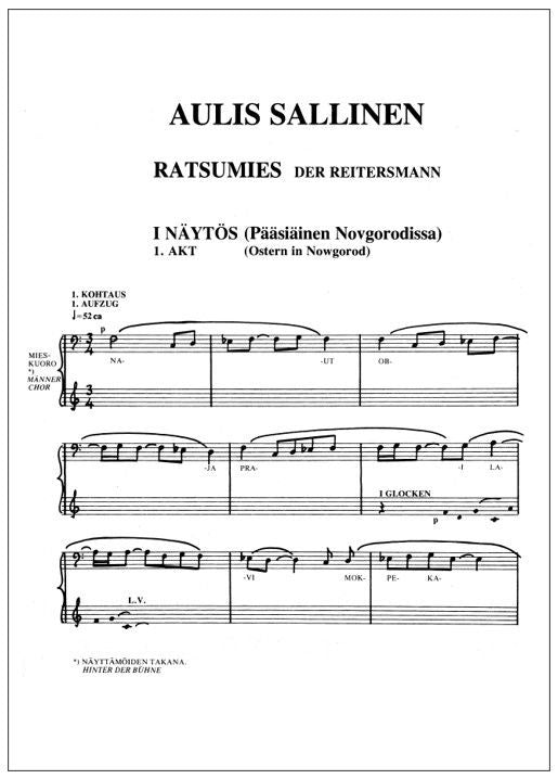 This product is 1979's edition of the vocal score of Aulis Sallinen's opera Ratsumies (sungable texts in Finnish and in German).