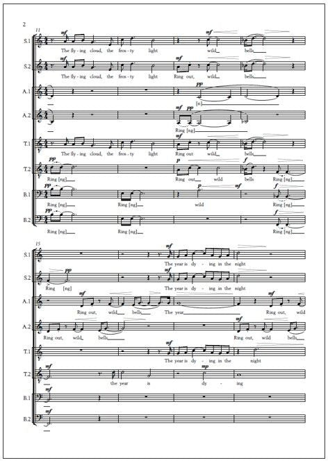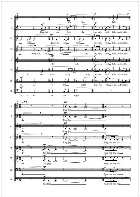 Alex Freeman's Ring Out, Wild Bells (2020, SSAATTBB) is set to text by Alfred, Lord Tennyson. Lue lisää