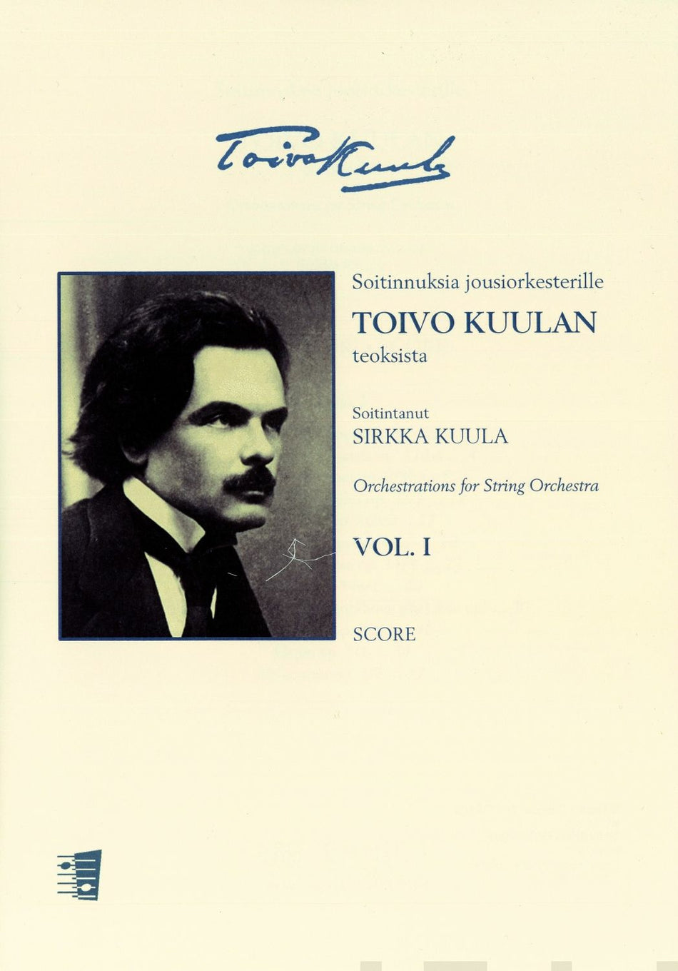 Sirkka Kuula has transcribed Toivo Kuula's violin-piano-, organ and choral works for string orchestra. They are ideal for music schools' string ensembles: themes move from one instrument to another, so that everyone will have fun content to play, many of the works have easy parts so that even those who have just started learning the instrument can join, and further: some of the works have solo parts so that they can be used as solo works as well. All parts are ready to be used with bowings printed on them. In this series a total of three volumes of transcriptions will be published. Vol. 1 and Vol. 2 are for string orchestra, Vol. 3 for violin orchestra (or three violins). The package contains score and parts (33221 + one each easy parts + one each solo parts).