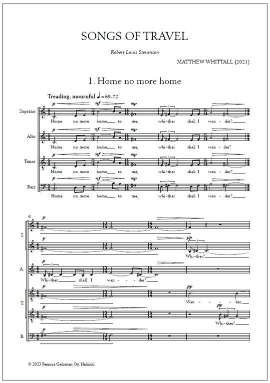 Matthew Whittall's large-scale choral song cycle Songs of Travel (2020-2021) is set to poems by Robert Louis Stevenson (1850-1894), compiled and adapted by the composer.