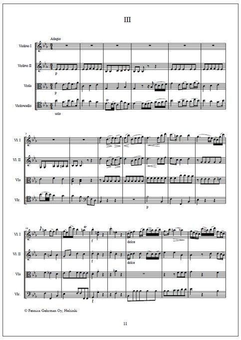 In the early 2000s, the Rantatie Quartet asked Anssi Mattila whether he would like to reconstruct the missing II violin part. The job was finished in 2004 and the Rantatie Quartet released a Classical Emma-winning disc of the Quartets in 2006.