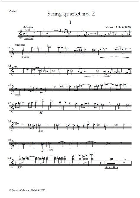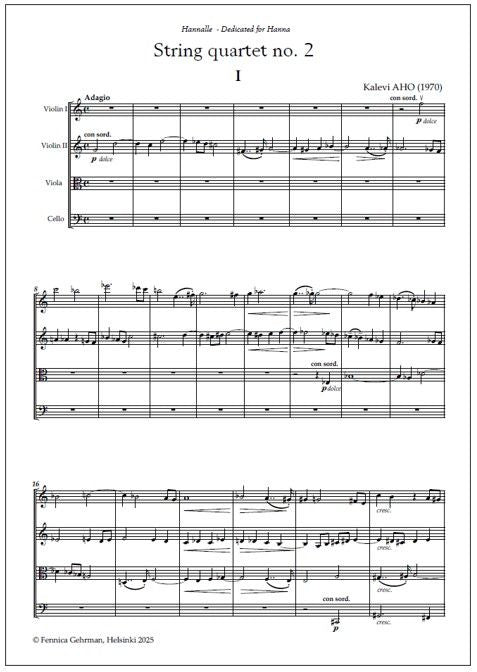 Kalevi Aho's (b. 1949) second string quartet dates from February 1970, when he was in his second year as a student of Eino-Juhani Rautavaara at the Sibelius Academy. Its premiere in the debut concert of the Finlandia Quartet in the Sibelius Academy concert series on 18 November 1970 also marked A... Lue lisää