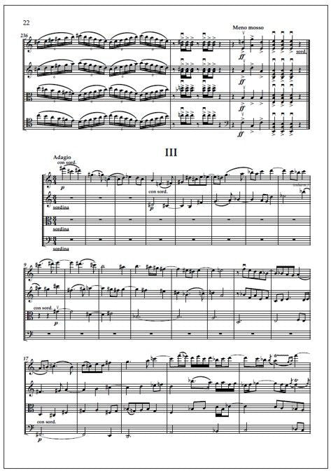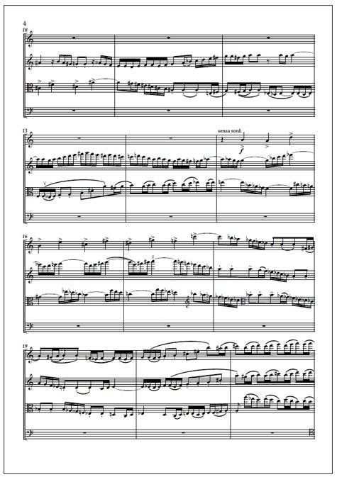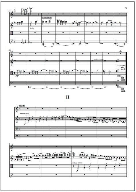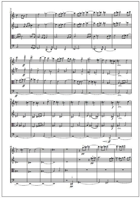The quartet is in three movements. The composer tells: "I tried to regulate the composition's formal structure according to ‘psychological' principles. The first movement freezes around the middle, but once it has recovered from this paralysing stage, it is free to go wild in the second movement in a top-speed Presto. I also tried to create the impression that the very quick and structurally complex Presto is ultimately just surface decoration for the slow, gentle flow - the undercurrents that are, during the second movement, only ostensibly inaudible."