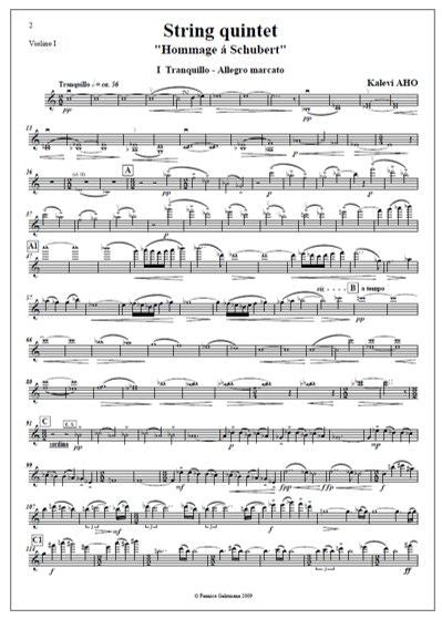 Kalevi Aho's (b. 1949) String quintet "Hommage à Schubert" (2009) borrows instrumentation (2 violins, viola and two violoncellos) and musical motifs from Schubert string quintet. The romantic topics are surrounded by alienating harmonies. The expansive work of four movements culminates in a noble... Lue lisää