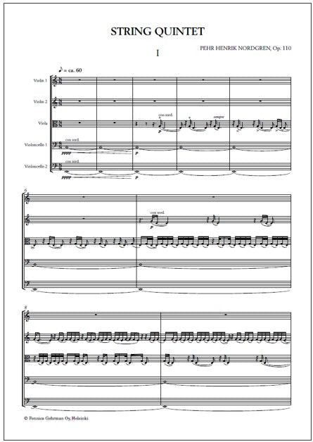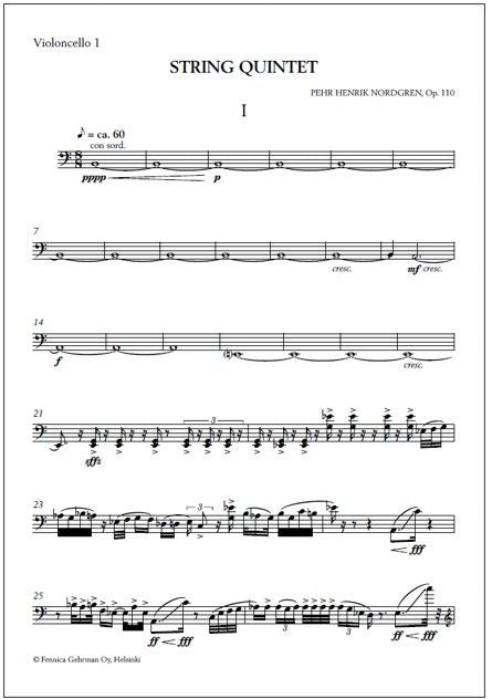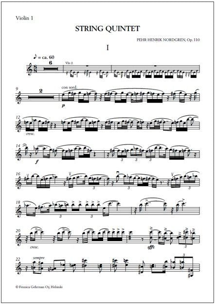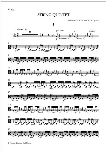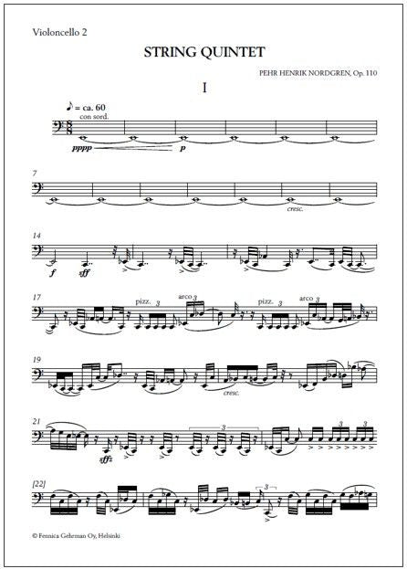 Pehr Henrik Nordgren (1944-2008) composed string quintet op. 110 in 2000. The work is scored for two violins, viola and two cellos. In his previous 4th (1997) and 5th symphonies (1998), Nordgren had been particularly fascinated by the world of Ingrian shepherd melodies and laments, which are char... Lue lisää