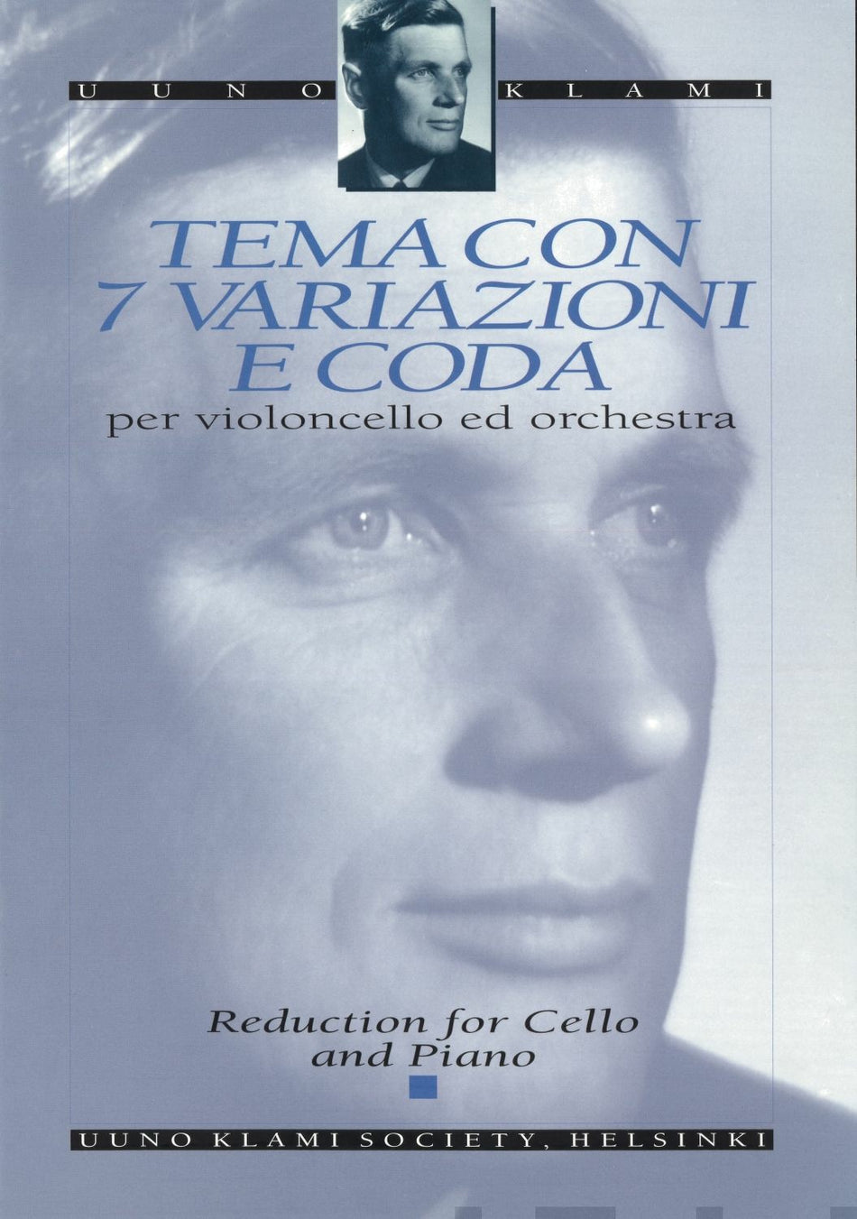 Uuno Klami sävelsi Tema con 7 variazioni e coda -teoksen Suomen Kulttuurirahaston vuonna 1954 järjestämää sävellyskilpailua silmällä pitäen. Teos palkittiin kilpailussa toiselle sijalle, mutta vasta ensilevytys 1994 nosti teoksen yleisön tietoisuuteen. Teoksen tematiikka on puhdaspiirteistä klassillista, säännöllisistä nelitahtisista säkeistä koostuva melodiikka. Uusklassistisen sävellystavan suosimat, oikukkaat "väärät sävelet" antava tonaaliselle lähtökohdalle jännittävää sävyä. Kiinteärakenteinen teema tuo Klamin teokseen kokonaisuudessaankin lujuutta ja ryhtiä. Näennäisen vaatimattomasta 20 minuutin kestostaan huolimatta teos kohaa jo kokonaisrakenteen hallinnankin puolesta Klamin huomattavampien teosten joukkoon ja merkkiteokseksi suomalaisessa musiikkikirjallisuudessa. Teema, 7 muunnelmaa ja kooda on kuitenkin paljon muuta kuin tyylipastissi. Siinä taitava orkesterinkäyttäjä kutsuu soittajistosta esiin milloin visionäärisiä, milloin kekseliään humoristisia tehoja säilyttäen aina ihailtavan hienostuneen tasapainon sooloäänen kanssa. Solistiosuus on hyvin vaativa. Yksinkertainen teema tarjoaa lähtökohdan rikkaalle muuntelulle.