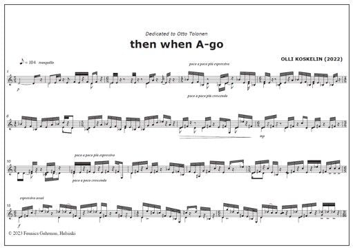 Olli Koskelin's then when A-go (2022) for guitar was premiered by Otto Tolonen, to whom the nine-minute work is dedicated.