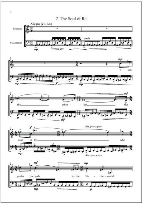 Timo-Juhani Kyllönen's Three songs op. 34a (1994) for soprano and cello spotlight three poems from the Ancient Egyptian Book of the Dead (15501069 BC).