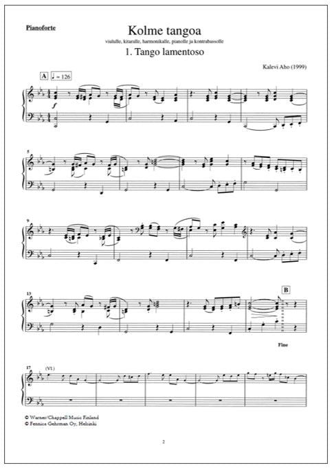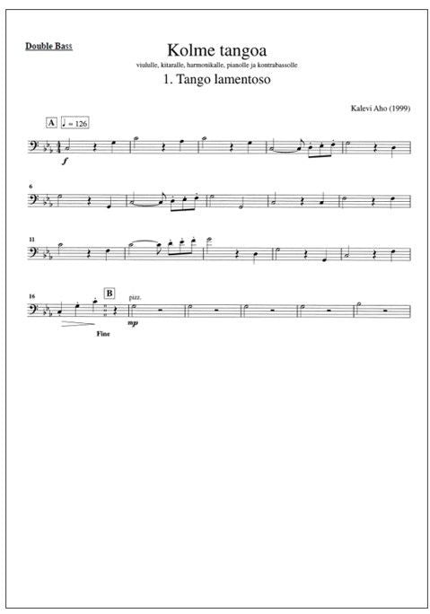 - Alanimike Kolme tangoa viululle, kitaralle, harmonikalle, pianolle ja kontrabassolle - Stemmat