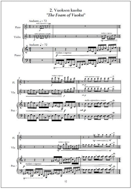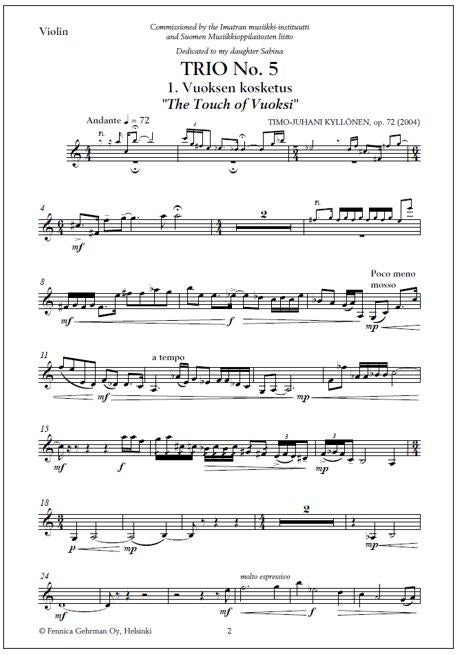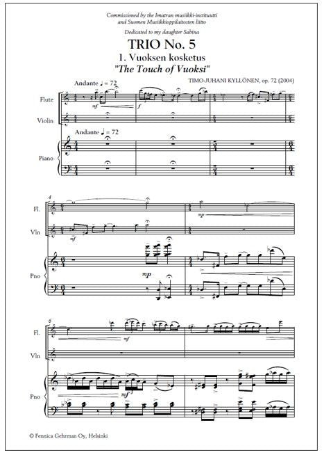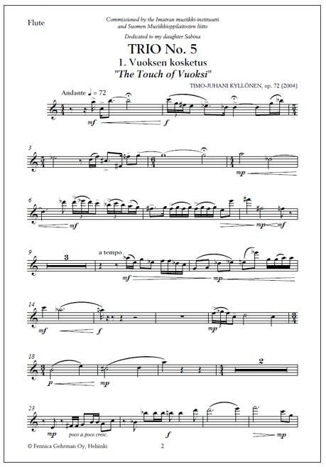 Timo-Juhani Kyllönen's Trio no. 5 (2004) for flute, violin & piano was commissioned by Imatra Music Institute and the Association of Finnish Music Schools.