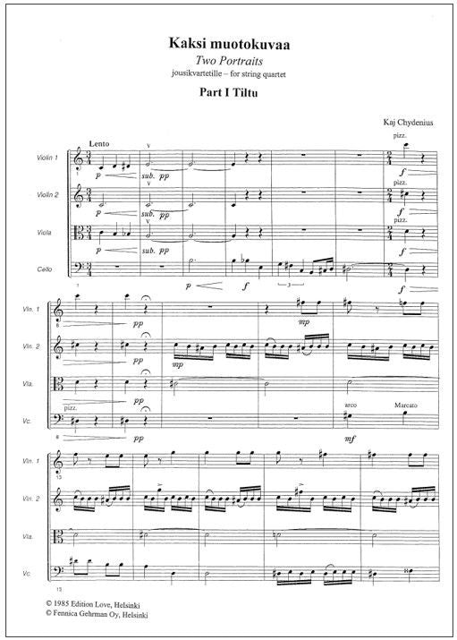 - Alanimike Kaksi muotokuvaa jousikvartetille - Partituuri