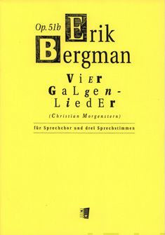 Bergman's hit piece for 3 speakers and speaking (mixed) chorus with a duration of 6 minutes. These 'gallows songs' are settings of poems by Christian Morgenstern. The popular Das grosse Lalula is the first movement of the Vier Galgenlieder. The second is scored for women's voices while the full c... Lue lisää