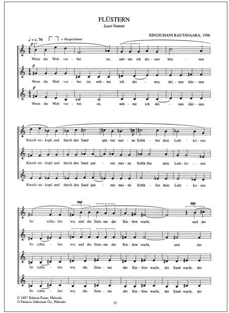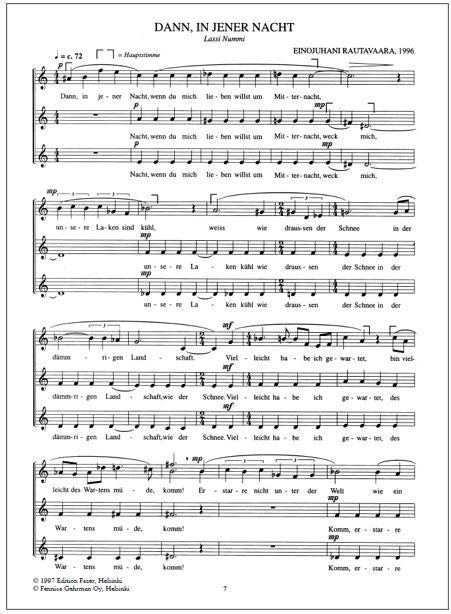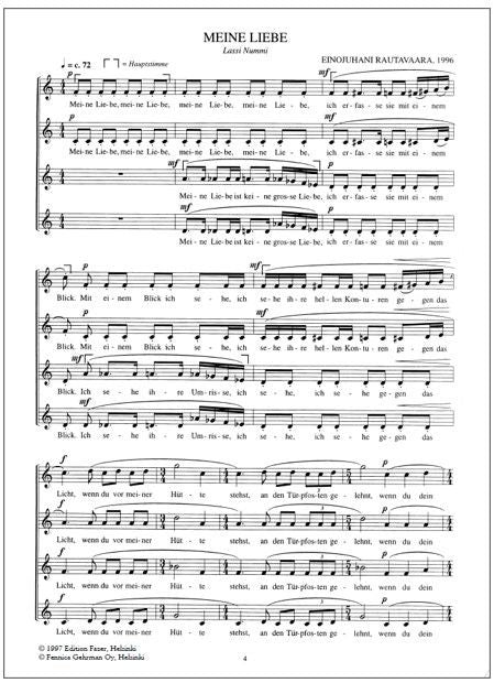 Five Songs to the Poems by Lassi Nummi (in German). The composer Einojuhani Rautavaara and the poet Lassi Nummi are the same age to the day, and it has long been their custom to send each other copies of any new works they publish. Rautavaara accordingly received a volume of Nummi's poetry transl... Lue lisää